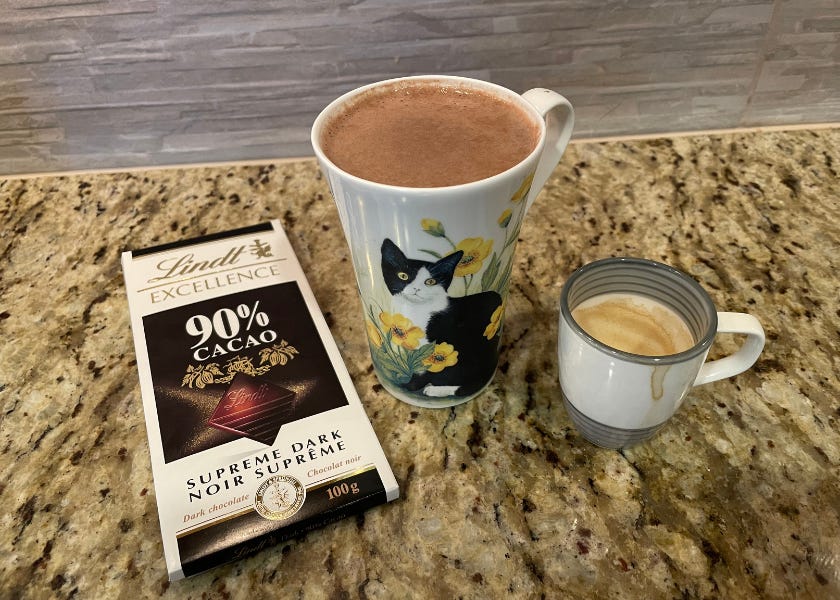 This version of a mocha is quite bitter, so add erythritol or stevia drops to taste. Feel free to use cocoa powder in place of the chocolate, if that is what you have on hand. Add it in the “egg” step so you can blend it with the immersion blender.